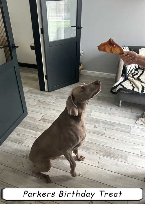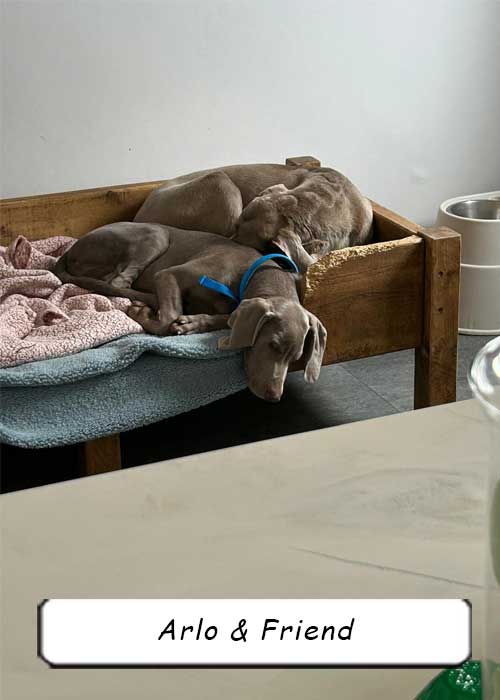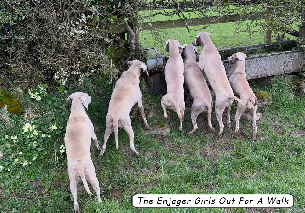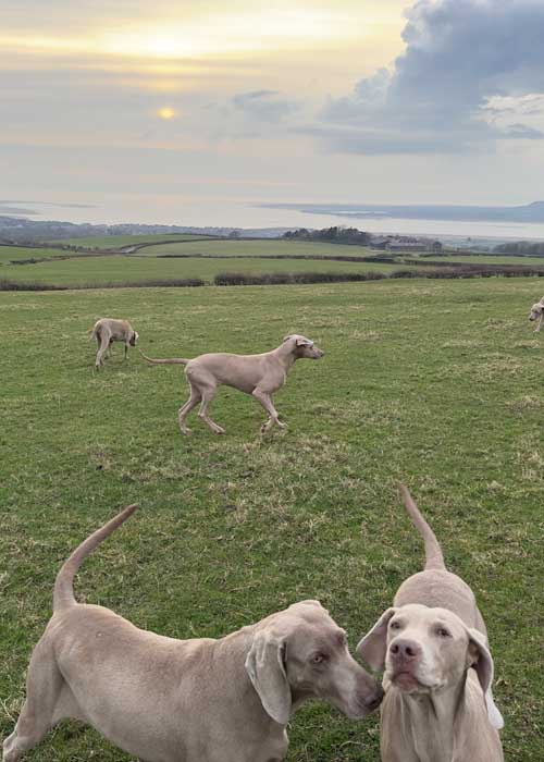 All our Weimaraners are trained at a young age to be able to walk with sheep, we regularly walk them through fields where sheep and their lambs are roaming freely.